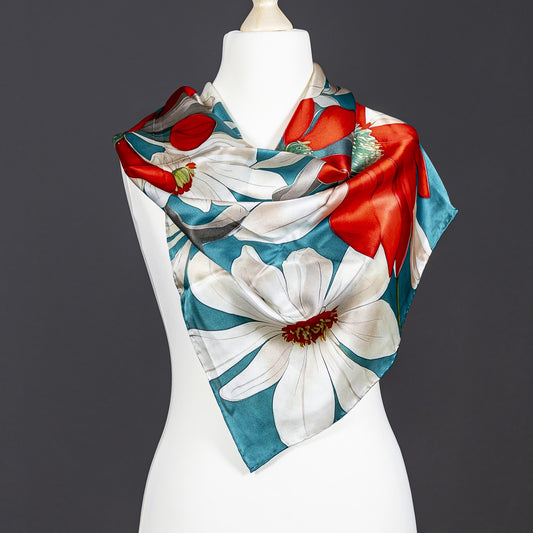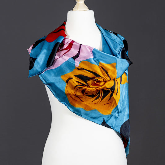 Kultiges Seidentuch aus Satin mit einer Rose: Inspiriert von Andy Warhol