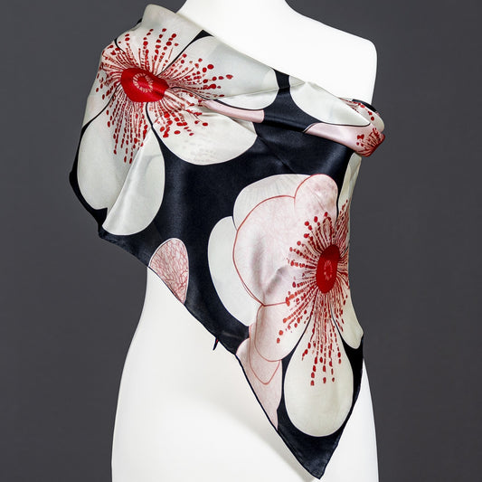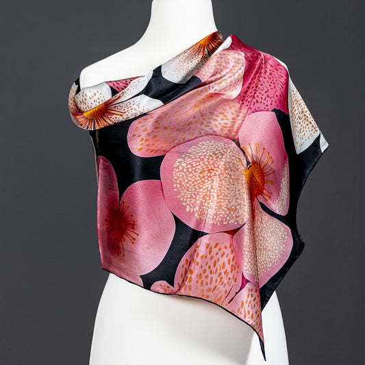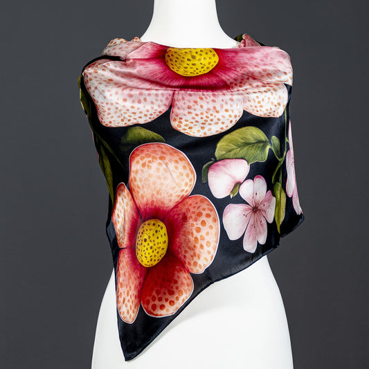 Kollektion Kirschblüten Seidentuch aus Satin: Inspiriert von Yayoi Kusama (Design I)