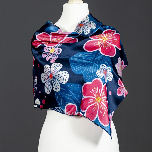 Kollektion Kirschblüten Seidentuch aus Satin: Inspiriert von Yayoi Kusama (Design V)